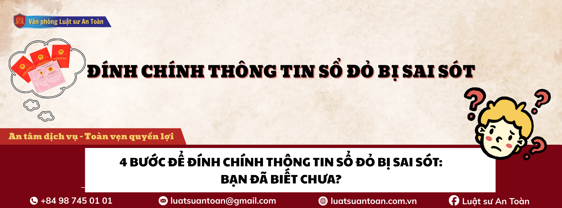 Căn cứ theo Khoản 1, Điều 152 của Luật Đất đai thì cơ quan có thẩm quyền cấp giấy chứng nhận có trách nhiệm đính chính sổ đỏ đã cấp, nếu có sai sót thông tin của người được cấp, sai sót về thửa đất, về tài sản gắn liền với đất so với hồ sơ kê khai đăng ký. Theo hướng dẫn của Bộ Nông nghiệp và Môi trường, quy trình đính chính sổ đổ gồm 4 bước (Áp dụng cho cả 3 trường hợp phái hiện sai sót thông tin gồm: